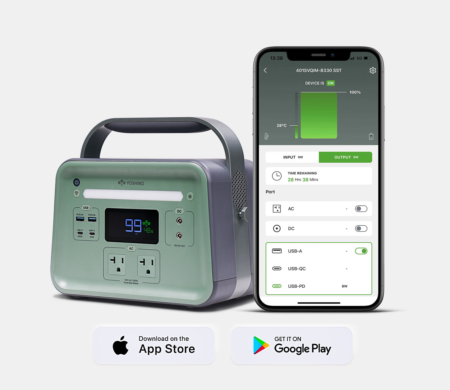 Check your power station's status, charge levels, runtime, and settings right on your phone. The Yoshino App puts you in complete control of your portable power.