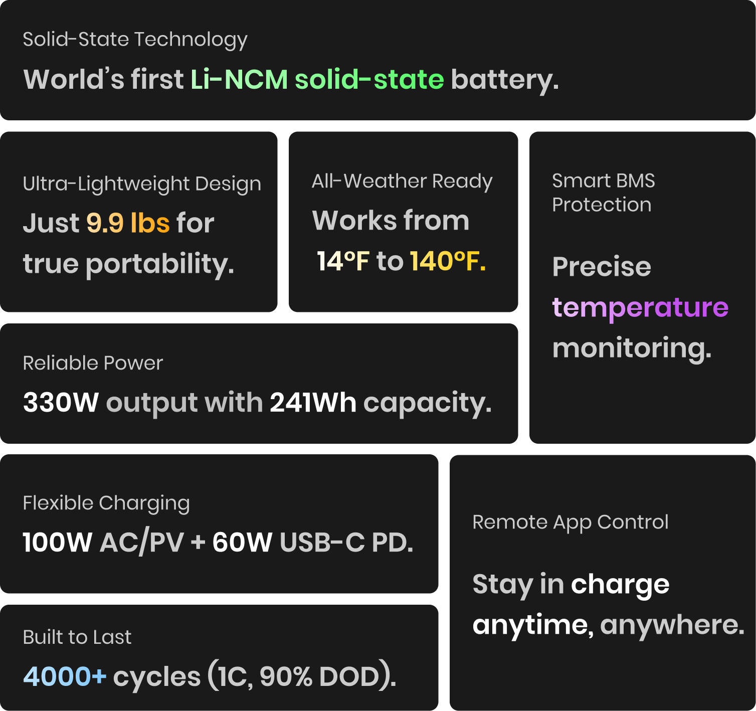 - Industry-Leading Li-NCM Solid-State Battery - Compact and High-Density