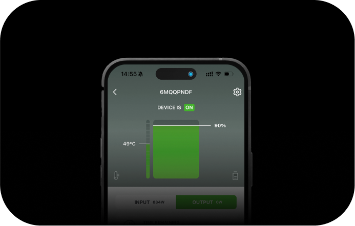 Effortlessly turn on or off the output power and stop powering fully charged appliances from anywhere. Experience smart living with just a touch.