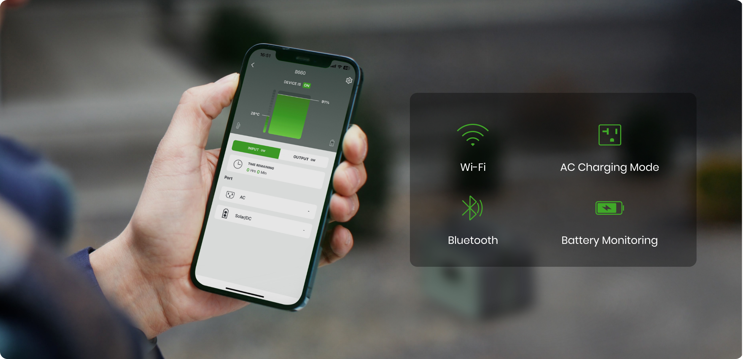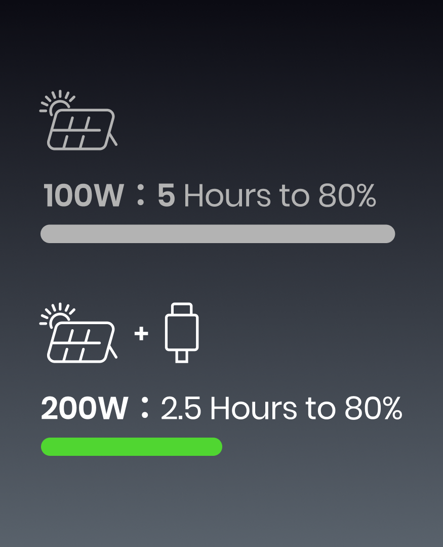 The B660 SST offers flexible charging options—plug it in via AC adapter, car cigarette lighter, USB-C input, or solar panels. For solar charging, its built-in Maximum Power Point Tracking (MPPT) technology maximizes energy harvest, ensuring optimal efficiency from your solar panels at any time.
