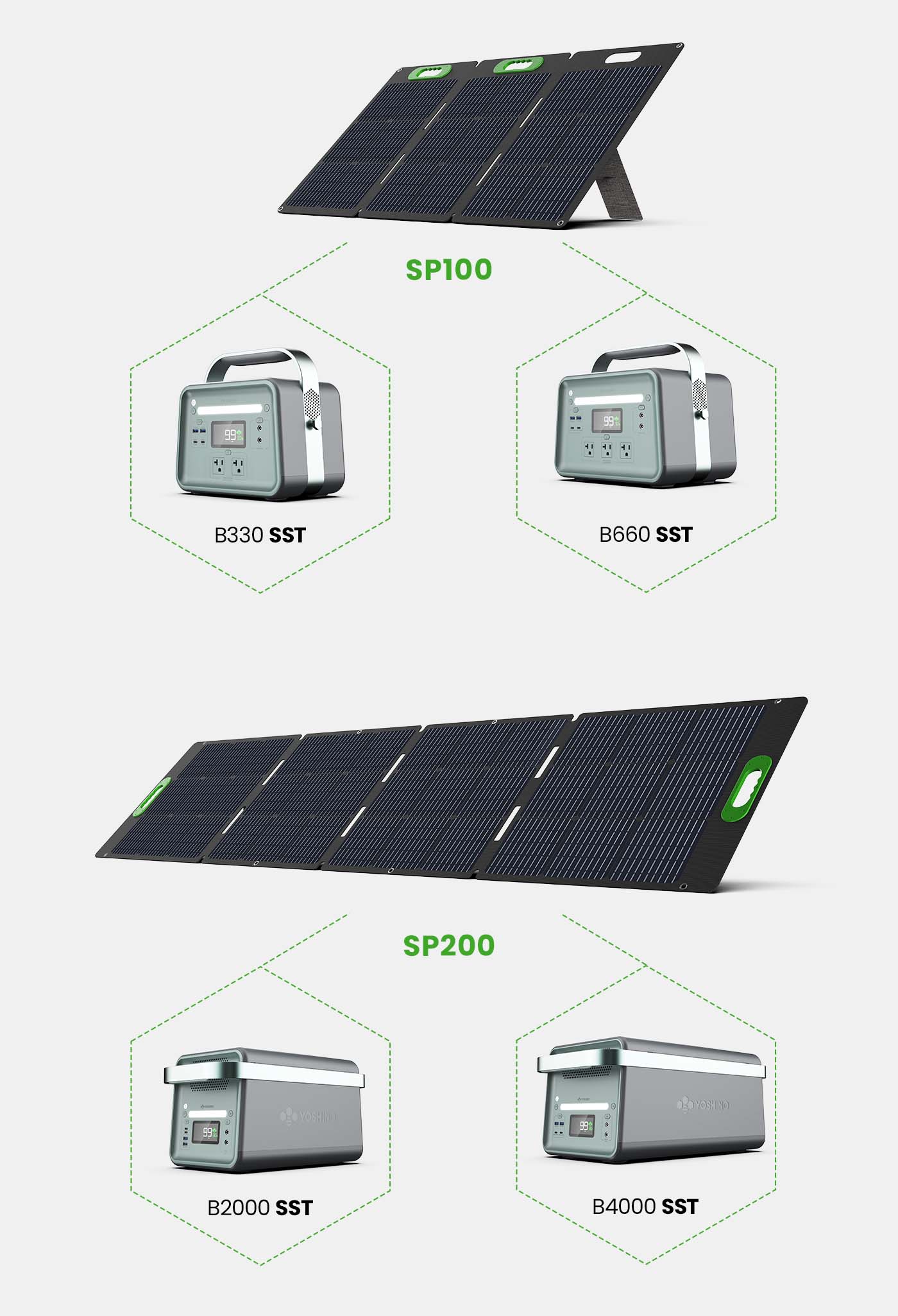 Break free from traditional power sources and make the switch to a sustainable alternative. Lightweight, foldable, and easy to carry, this portable solar panel is the perfect choice for Yoshino power stations. Generating up to 100W of power, a single panel can charge our B330 SST in just 3.5 hours or our B660 SST in 8 hours.